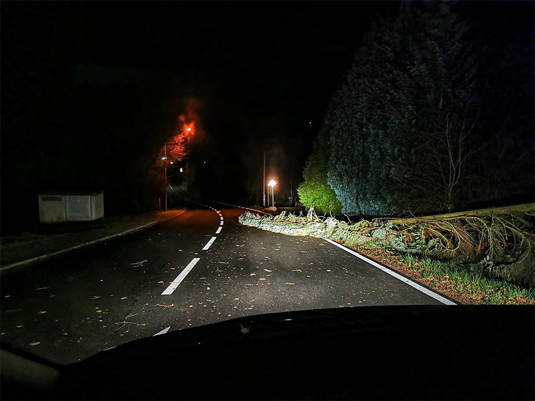 10.02.2020 / 03:40 Uhr: Baum über der Fahrbahn in Laudenau