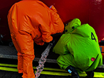 Der Gefahrgutzug Gersprenztal wurde zu einer Person alarmiert, die sich bei Ladearbeiten mit Gefahrgut eingeklemmt hat. An der fiktiven Einsatzstelle angekommen, stellte sich sogleich heraus, dass die genaue Einsatzstelle nur schwer einsehbar ist, da sie sich hinter mehreren LKWs befand, somit gingen die Einsatzkräfte zunächst nach der GAMS- Regel vor: Gefahr erkennen - Absperren - Menschenrettung und Spezialkräfte anfordern (die sich bereits auf dem Weg befanden).