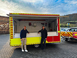 Dem geschulten Auge von Lukas Lannert, Geschäftsführer von Lannert Werbetechnik, entging am Reichelsheimer Weihnachtsmarkt nicht, dass im Inneren des Hängers noch ein alter Schriftzug prangte. Spontan sagte er: Bringt mir mal den Hänger vorbei, ich foliere euch das in eurem Design.